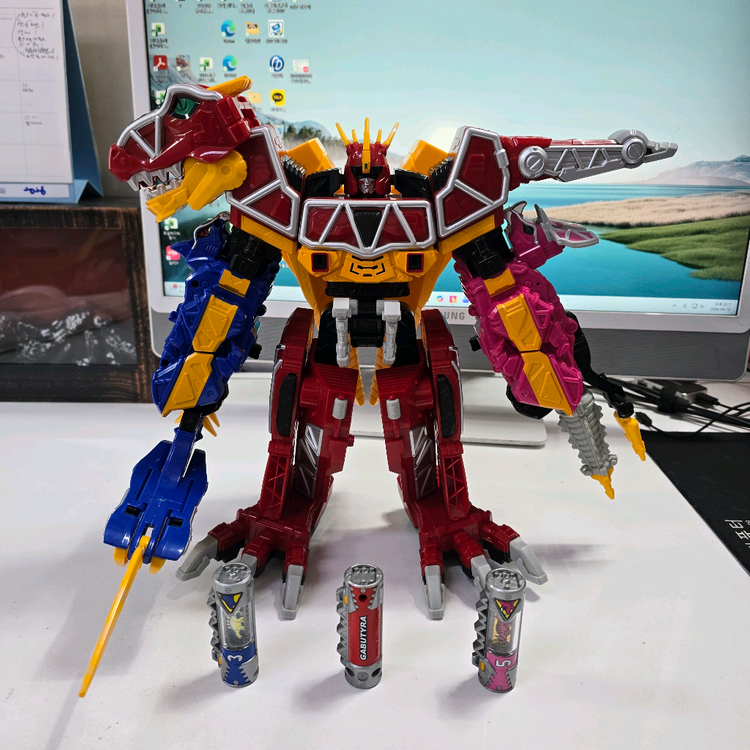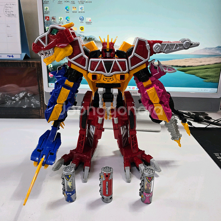 반다이코리아 핀워레인저 다이노포스 DX티라노킹 파손과 손상 전혀 없어요. 기본적인 다이노셀 3개 포함이며 다이노셀을 티라노킹 입에 넣으면 소리 잘 납니다. 변신과 합체 잘 됩니다. 육만원미만 계좌 입금 후 거래개시 평일 한진택배 오후2시마감 (토.일요일 안함) 구매 후 환불 안되요