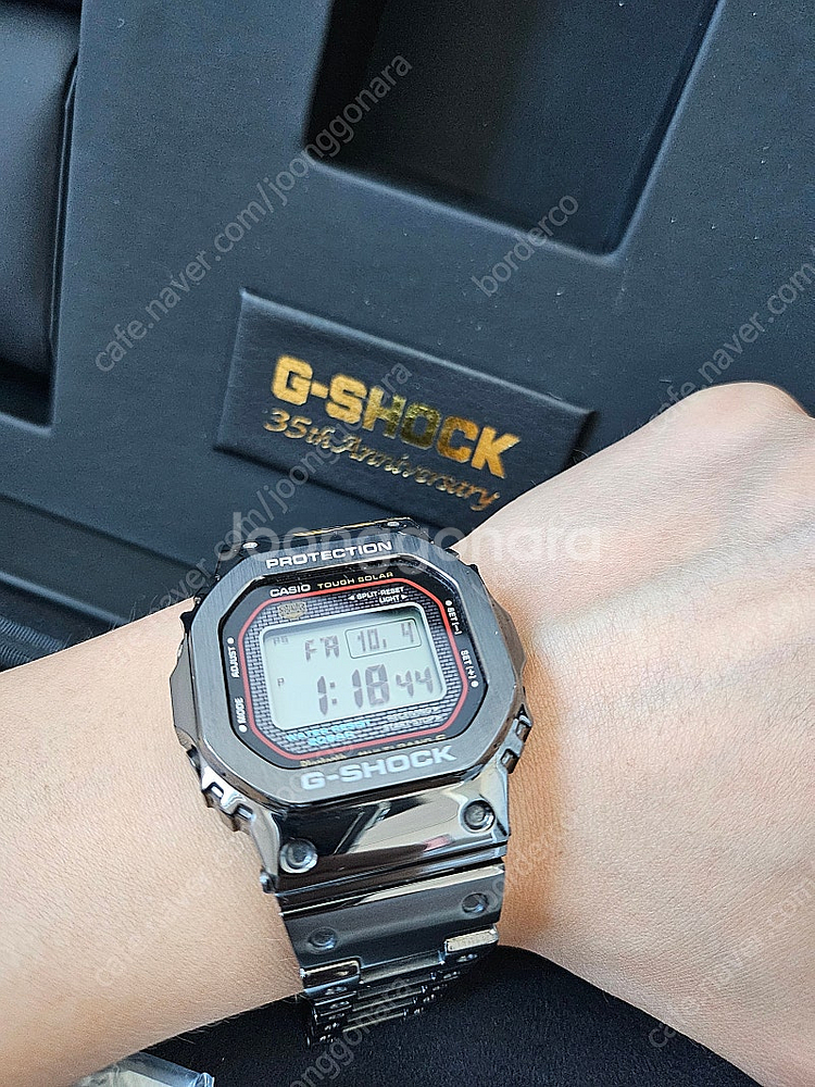포터35주년 콜라보인 GMW-B5000TFC-1JR 모델입니다. 전세계 500개 한정 모델입니다. 포터의 시계 케이스와 함께 세트 구성인 풀셋입니다. 검색해보시면 아시겠지만 이베이나 일본 라쿠텐 일옥등에서는 현재 670만원 정도이며 관세포함 800이 넘어가는 가격대를 형성하고 있습니다. 저역시 프리미엄을 주고 구입을 했으며 소장하기 보단 실착하실분에게 갔으면 더 좋겠다는 생각입니다. 010-삼영5칠-일구14