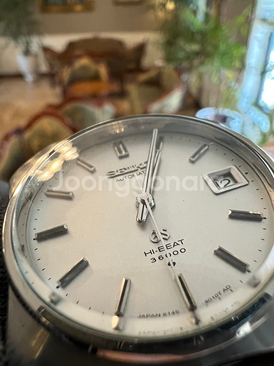 안녕하세요. 시계 수집가들 사이에서 독보적인 케이스 디자인으로 사랑받는 그랜드 세이코 61GS 'The Pillow' (Ref. 6145-8020) 모델을 내놓습니다. 단순히 오래된 시계가 아닌, 1960년대 말 세이코가 세계 시계 시장을 뒤흔들던 '골든 에이지'의 기술력과 미학이 응축된 마스터피스입니다. 이 모델이 'The Pillow(베개)'라는 별칭을 얻게 된 이유는 손목 위를 부드럽게 감싸는 특유의 쿠션형 케이스 덕분입니다. 날카로운 직선 위주의 '타나카 디자인(Grammar of Design)'과는 또 다른, 풍부한 볼륨감과 우아한 곡선미를 자랑합니다. Heart of Hi-Beat: 초당 10진동, 시간당 36,000번 박동하는 Cal. 6145 무브먼트가 탑재되었습니다. 물 흐르듯 매끄럽게 흘러가는 초침의 움직임은 하이비트 모델에서만 느낄 수 있는 경이로운 경험을 선사합니다. Gold Medallion: 백케이스에는 그랜드 세이코의 자부심인 황금 사자 메달리온이 선명하게 보존되어 있어 소장 가치를 더합니다. Presence: 빛의 각도에 따라 다르게 반짝이는 칼날 같은 인덱스와 핸즈는 수십 년이 지난 지금도 현행 모델에 뒤지지 않는 압도적인 가독성과 광택을 보여줍니다. ── 상세 상태 정보 ── 모델명: Grand Seiko 61GS (6145-8020) 무브먼트: 자동완성(Automatic) 하이비트 36,000 bph 케이스: 쿠션형 스틸 케이스 (폴리싱 상태 양호, 날카로운 엣지 유지 중) 다이얼: 오리지널 실버 다이얼 (빈티지 특유의 미세한 파티나가 멋스럽게 익어 있습니다) 글라스: 운모 유리 특유의 따뜻하고 입체적인 느낌 현행 그랜드 세이코에서는 느낄 수 없는 빈티지 61GS만의 묵직한 존재감이 있습니다. 특히 이 'The Pillow' 모델은 셔츠 소매 속으로 부드럽게 들어가면서도 반소매나 캐주얼한 복장에서는 특유의 볼륨감으로 시선을 사로잡는 마력이 있습니다. 기계식 시계의 정점을 경험해보고 싶으신 분, 혹은 빈티지 그랜드 세이코의 세계에 입문하고자 하는 컬렉터분께 최고의 선택이 될 것입니다. 경험해보지 못한 다양한 시계들과 교환도 좋습니다. 참고: 빈티지 시계 특성을 이해하시는 분과 기분 좋은 거래 희망합니다. 사진은 보정 없는 실사이며, 추가적인 상세 사진이나 구동 영상이 필요하시면 언제든 말씀해 주세요.