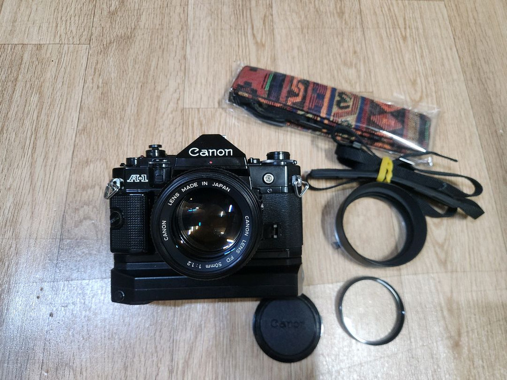 캐논 A-1바디및 50mm F1.2 렌즈 + 모터드라이브 셋트 판매합니다 세월에비해 전체적인 상태는 깔끔하며...전기능 이상없이 잘 작동합니다 작년 8월경 종로 제일 카메라에서 오버홀 완료했습니다 렌즈도 곰팡이 포그없이 깨끗합니다 렌즈 F1.4 렌즈 아닌 더 밝은 F1.2 렌즈 입니다 캐논 POWER WINDER A2 모터드라이버에 AA타입 밧데리 4개 들어가구요 ...잘 작동합니다 바로 사용 하는데 전혀 이상없습니다 렌즈 후드도 정품메탈 후드입니다 사진에 나온 구성품이 전부 입니다 사진 잘 보시구 필요하신분이 구매하세요 모든문의는 o1o5960오육삼육 전화나 문자 주세요 직거래는 파주 엘지디스플레이 인근입니다 택배비거래시엔..편의점택배이용 착불이구요 ...대략 5-6000원선입니다 (지역과 무게 차이 있음)