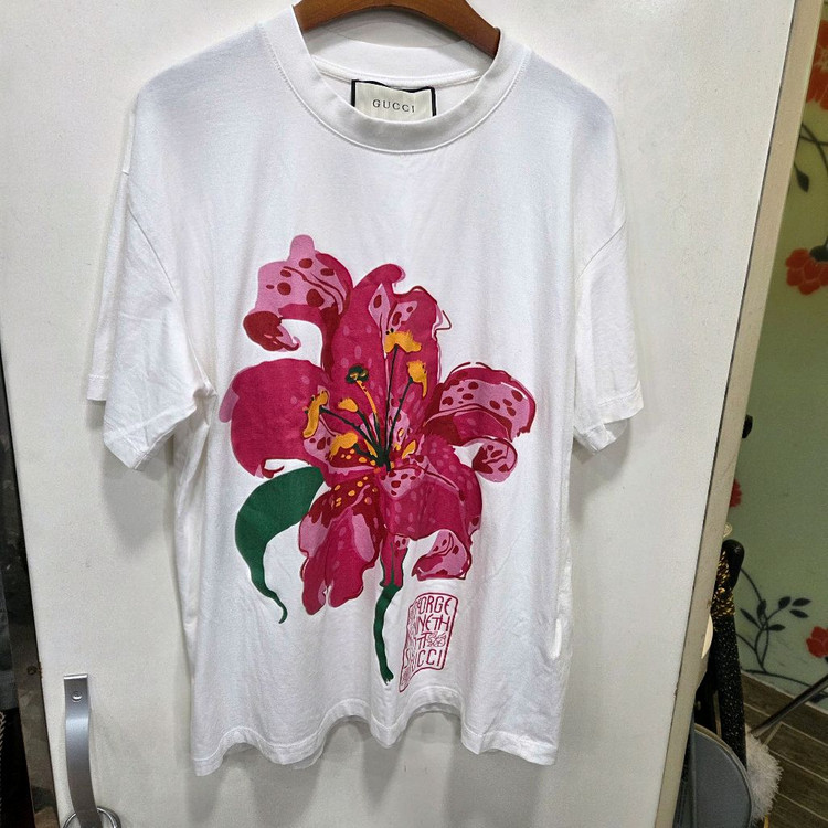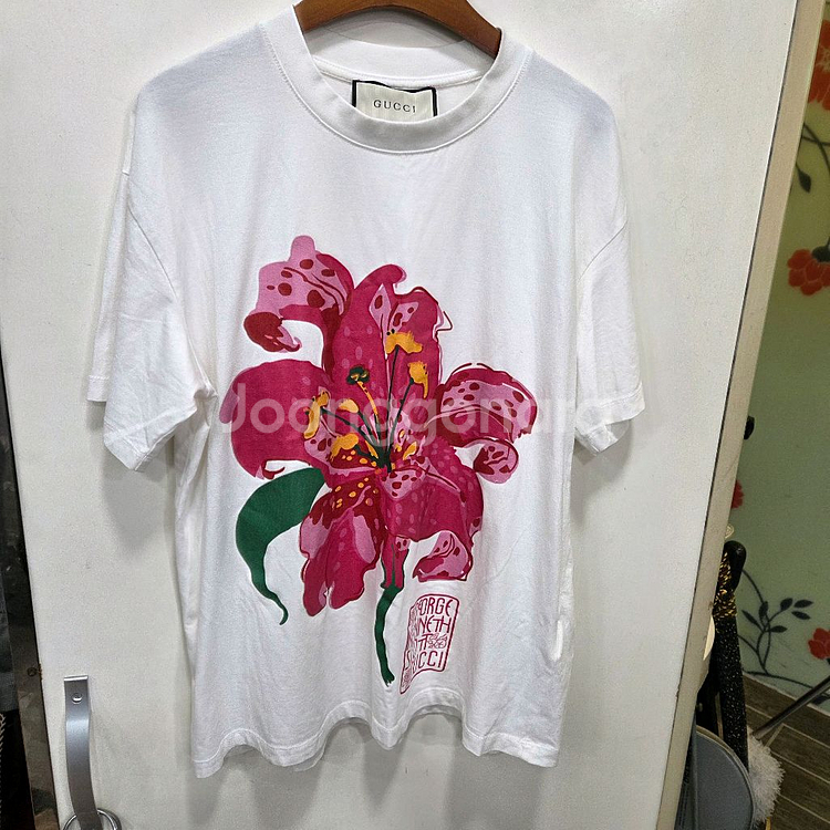 구찌(Gucci)와 아티스트 켄 스콧(Ken Scott)의 협업으로 탄생한 플로럴 프린트 면 티셔츠입니다. 남.녀.공용 루즈핏 제품 입니다 얼룩전혀 없이 깨끗 합니다 어께50 가슴반54 기장68 여성55-66-77 사이즈 남성95편안 70년대 스타일에서 영감을 받은 에필로그(Epilogue) 컬렉션 제품으로, 켄 스콧 특유의 화려한 대형 보태니컬 프린트가 특징입니다.
