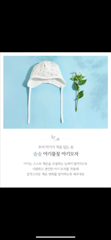 밤부베베 솔솔 아기풀꽃 신생아용 모자 새상품 입니다.