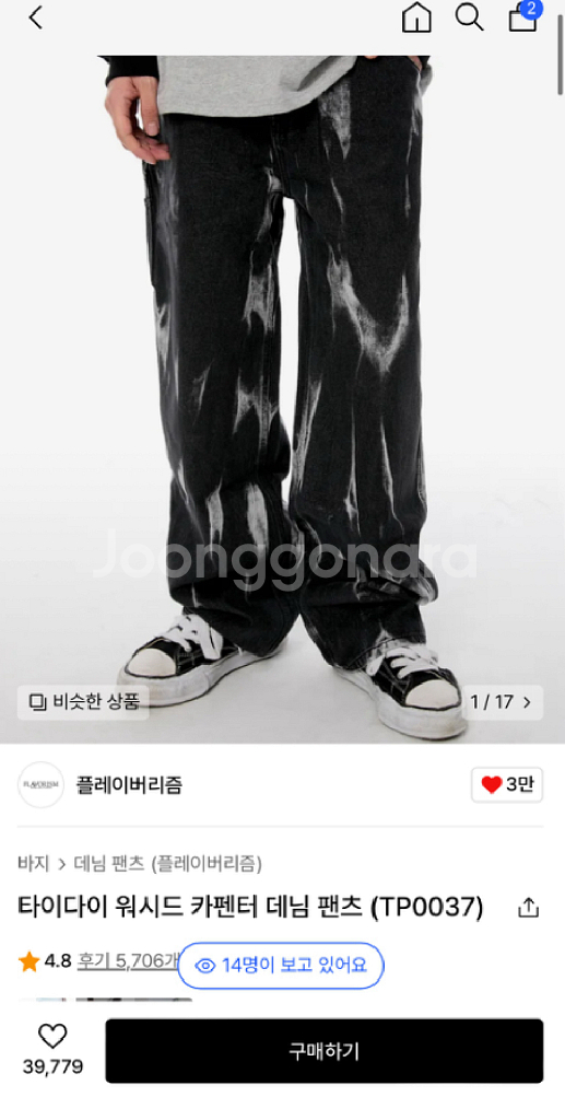 무신사 플레이버리즘 타이다이 데님 팬츠