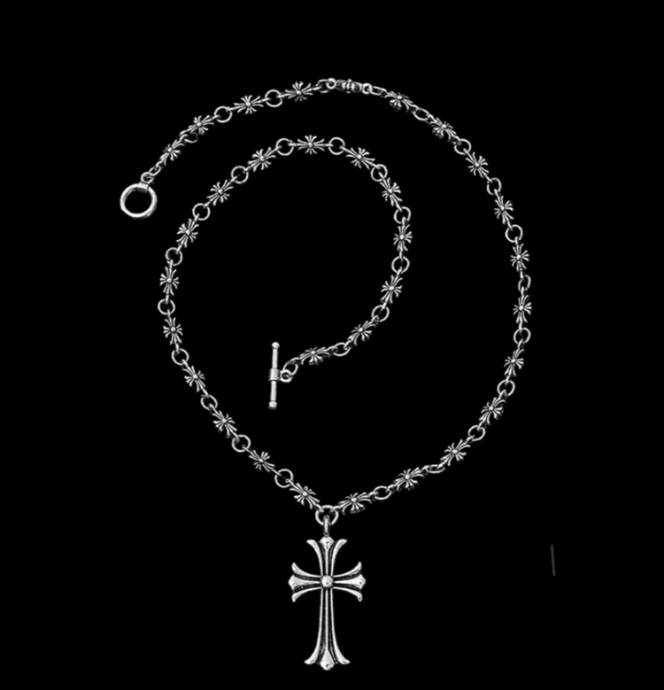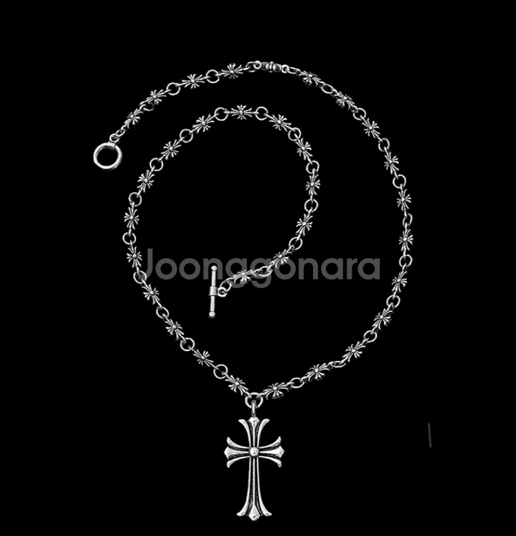크롬하츠 스타일 크로스 목걸이 판매합니다. 실버 컬러의 디테일한 체인과 존재감 있는 크로스 펜던트가 포인트인 제품으로, 스트릿/캐주얼 코디에 잘 어울립니다. 단독 착용만으로도 충분히 포인트 주기 좋고 전체적으로 밸런스가 잘 잡힌 디자인입니다. 상태는 전반적으로 양호하며 약간의 사용감 정도 있습니다(사진 참고). 중고 특성상 교환/환불은 어렵고, 궁금한 점 있으면 편하게 문의 주세요.