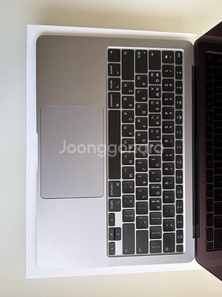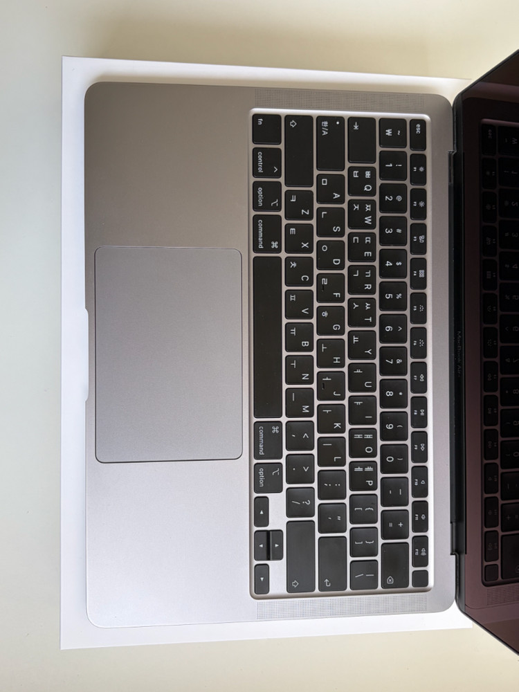 2020년에 구입한 맥북 에어 M1 스페이스그레이 기본형 나의 맥북 찾기 끄고 로그아웃 정상 초기화 상태입니다. 대부분 가벼운 문서 작업이나 영화 감상, 인강 위주로 집에서 데스크탑처럼 사용했으나 미세 흔적 있습니다. 사이클 수 618회, 배터리 성능 최대 83.8% 확인되어 아무래도 배터리 교체를 감안하는 것이 좋을 듯 합니다. 박스는 포함되지 않은 본품과 충전기 구성입니다. 깨끗하게 준비해 두었습니다. 망원 합정역 직거래