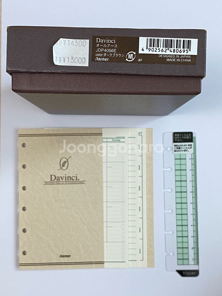 구성품 추가했습니다. 추가 구성품 :방안자 북마크, 다빈치 속지 25매(달력 12매, 체크리스트 8매, 5mm 줄지 5매) 계좌이체시 택포 12만원 → 11만 안심결제시 택배비 별도로 바로 구매하시면 됩니다. ====== 레이메이 다빈치 그란데 올어스 저스트리필 포켓사이즈 다크브라운 판매합니다. 궁금하신 점이나 추가사진, 인증 요청 등은 채팅으로 부탁드립니다. 구매 이후 교환 환불 문의는 받지 않습니다. ====== 제품번호 JDP4056E 현재 단종된 모델로 어스레더(소가죽)로 만들어진 저스트리필 사이즈 6공 다이어리입니다. 가로 9cm*세로 14cm 크기로 트래블러스노트 패스포트보다 가로는 약간 짧고 세로는 약간 더 긴 편입니다. 링 11mm, 컬러 다크브라운(사진보다 많이 어둡습니다). 왼쪽 카드 포켓 2, 와이드 포켓 1, 오른쪽 와이드 포켓 1, 펜꽂이가 있습니다. 펜꽂이는 지름 14mm까지 수납가능. 가로 76mm 다빈치 6공 속지를 위해 만들어진 저스트리필 사이즈입니다. 일반 6공 a7과 타공 간격은 같으나 타사 (파일로팩스 포켓 등) 속지는 튀어나옵니다. ====== 하자와 전체적인 컨디션 집에서 세팅만 몇 번 했는데 약간의 하자 & 사용감 있습니다. 1) 앞면 미세하게 손기름 묻은 부위 O 2) 뒷면 작은 찍힘과 약간 큰 눌림 O 3) 펜꽂이 단면 엣지 마감 떨어진 곳 O 4) 구매했을 때부터 내부 오른쪽 상단에 미약한 엣지코트 묻음 자국 O 5) 기타- 포장 박스 윗면 모서리 닳음 O 가죽은 힘줘서 90도 이상 열어본 적이 없어 아직 링 주변 세로 기스는 없습니다. 전체적으로 가죽이 뻣뻣합니다. 처음에는 많이 단단하고 사용하면서 부드러워지는 가죽입니다. 위에 서술된 하자를 제외하곤 전체적으로 아직 에이징이 안된 새 것에 가깝습니다.