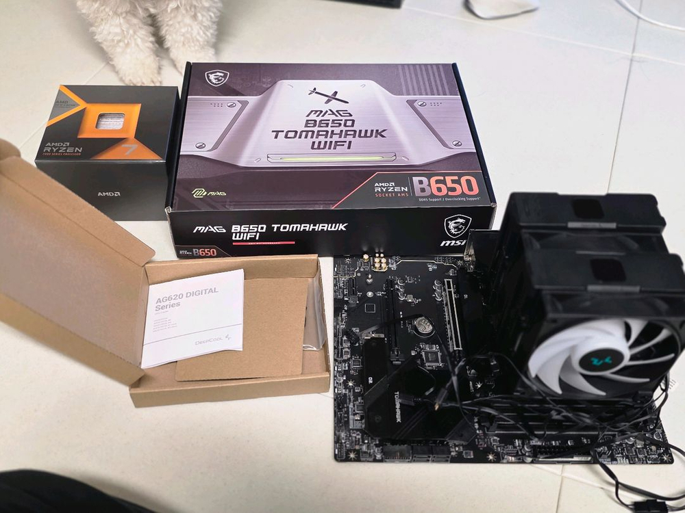 개인정보(거래정보)를 주고받는 행위는 사기에 노출될 수 있으므로 즉시 중고나라로 신고해 주세요라이젠 7800X3D + MSI B650M 토마호크 WIFI + ag620 디지털 쿨러가 조립되어있어요 박스는 라이젠, msi b650있고 ag620부품박스만 있어요 24년 4월에 구매했습니다. 능곡역 근처 아파트 직거래 원해요