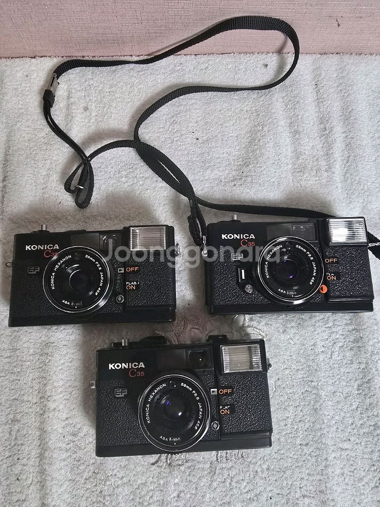 코니카 C35 필름카메라 EF 3대 일괄 판매합니다. 부품용으로 판매하는 제품들이라 상태는 사진과 같습니다. 코니카 수집하시는 분이나 부품 필요하신 분께 추천드려요. 부품용으로 판매하지만 레버셧터 이상없는데 후레쉬가 안떠집니다 수리하실수 있으신분이 가져가셔서 되파셔도 괞찬으실듯합니다~^^