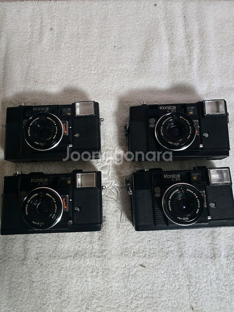 개인정보(거래정보)를 주고받는 행위는 사기에 노출될 수 있으므로 즉시 중고나라로 신고해 주세요코니카 C35 필름 카메라 4대 일괄 판매합니다. 외관은 사진과 같으며, 부품용으로 판매합니다. 4대중 왼쪽 두대는 셧터 이상이구요 오른쪽 두대는 레버 셔터는. 이상없는데 후레쉬가안되고 사진처럼 AsA가 안돌아갑니다 부품용이나 수리하실수 있으신분이 가져가세요 ^^
