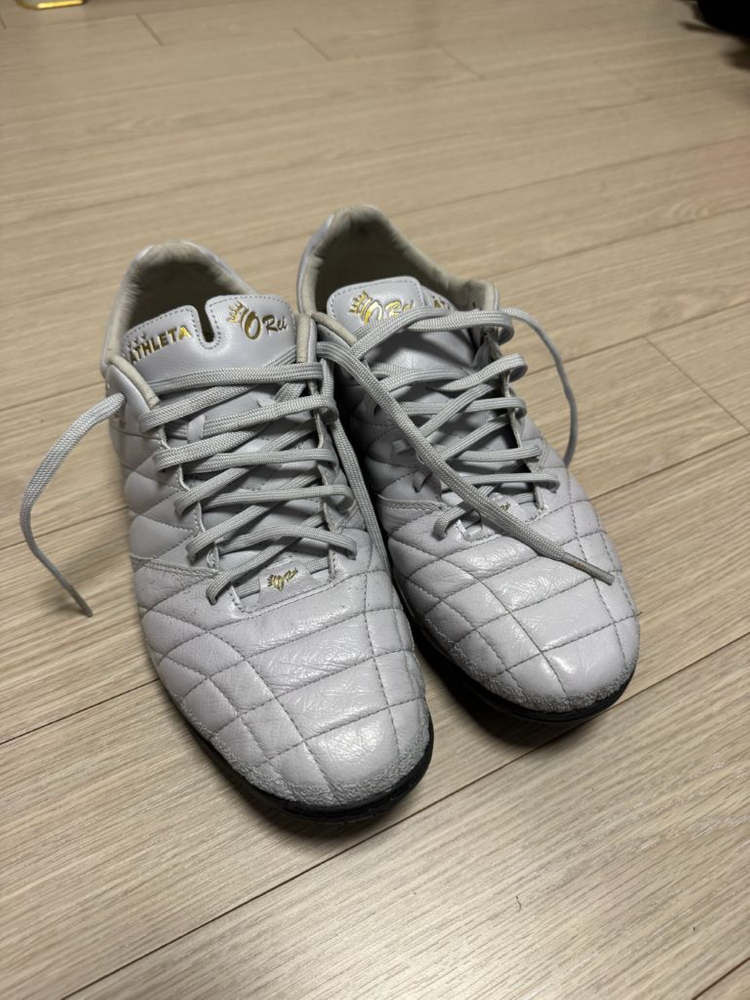 개인정보(거래정보)를 주고받는 행위는 사기에 노출될 수 있으므로 즉시 중고나라로 신고해 주세요풋살 경기 1회착 별주모델 그레이/골드 컬러입니다 슈ㅍㅅㅍㅊ 에서 구입. 상품박스는 없습니다 2중포장해서 보내드립니다 260 사이즈입니다