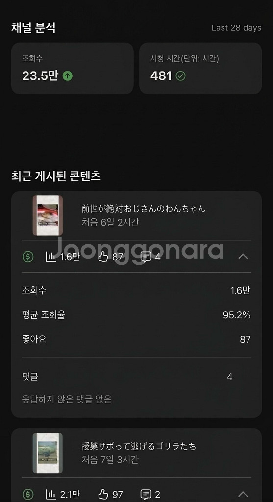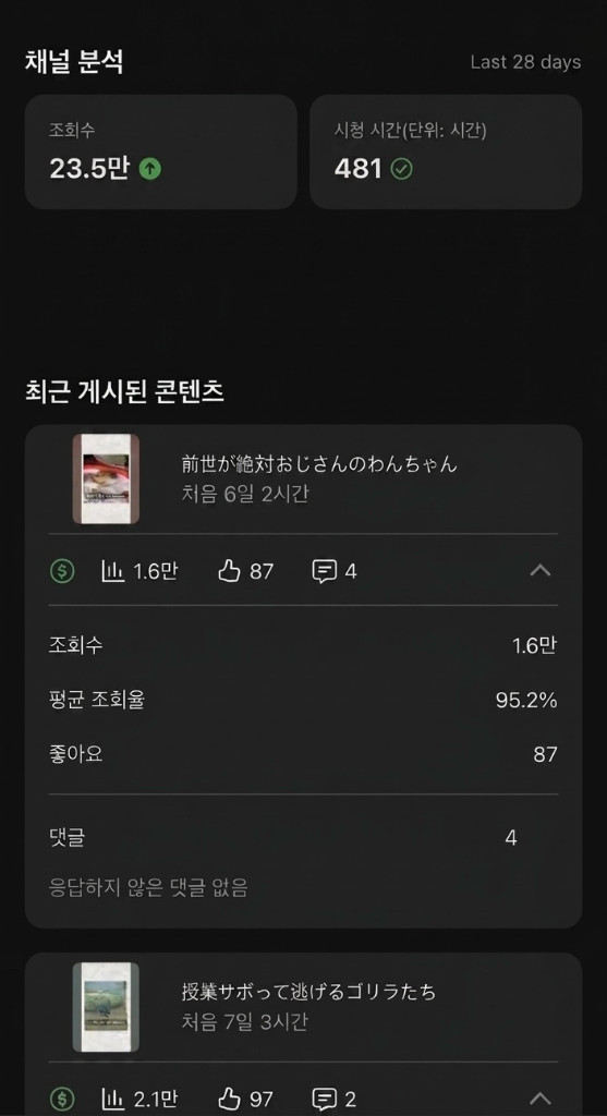 개인정보(거래정보)를 주고받는 행위는 사기에 노출될 수 있으므로 즉시 중고나라로 신고해 주세요수익창출 활성화 채널 판매합니다 👉중동 타겟 롱폼+쇼츠 채널이었지만 일본 쇼츠 채널로 운영중 👉일본 알고리즘으로 바뀜 👉채널 이전 후 모두 비공개로 바꾼후 새 영상 올리면 됨 👉유튜브 브랜드 이전이고 주의 및 경고 없음 가격: 38만원 문의 주세요~