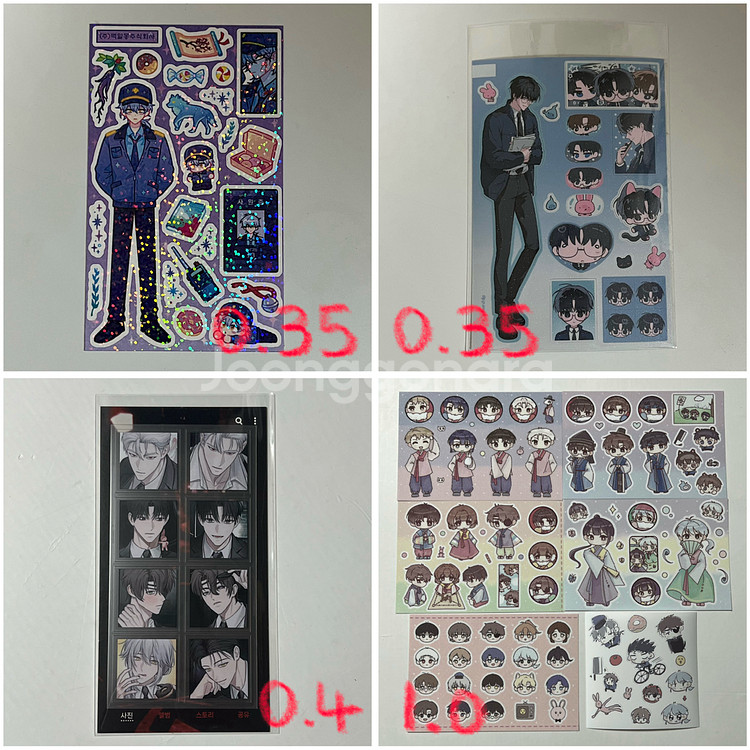 구매 원하는 스티커 문의주세요 안전결제 가능합니다 안전결제는 편의점택배만 사용합니다 계좌 거래시 gs반택 +2,000원 가능 J3 스탠딩 씰스티커 - 0.35 소동님 김솔음 재관국 스티커 - 0.35 쯔코님 백일몽 출근 스티커 - 0.4 32님 한복티커 D조 - 5장 일괄 1.0 32님 한복티커 현무1팀 - 5장 일괄 1.0 32님 한복티커 동기조 - 5장 일괄 1.0 32님 한복티커 성해앤나솔 - 5장 일괄 1.0 32님 대가리 동동 단체티커 -5장 일괄 1.0 + 덤스티커까지 일괄 미사용 예민하면 구매하지 마세요