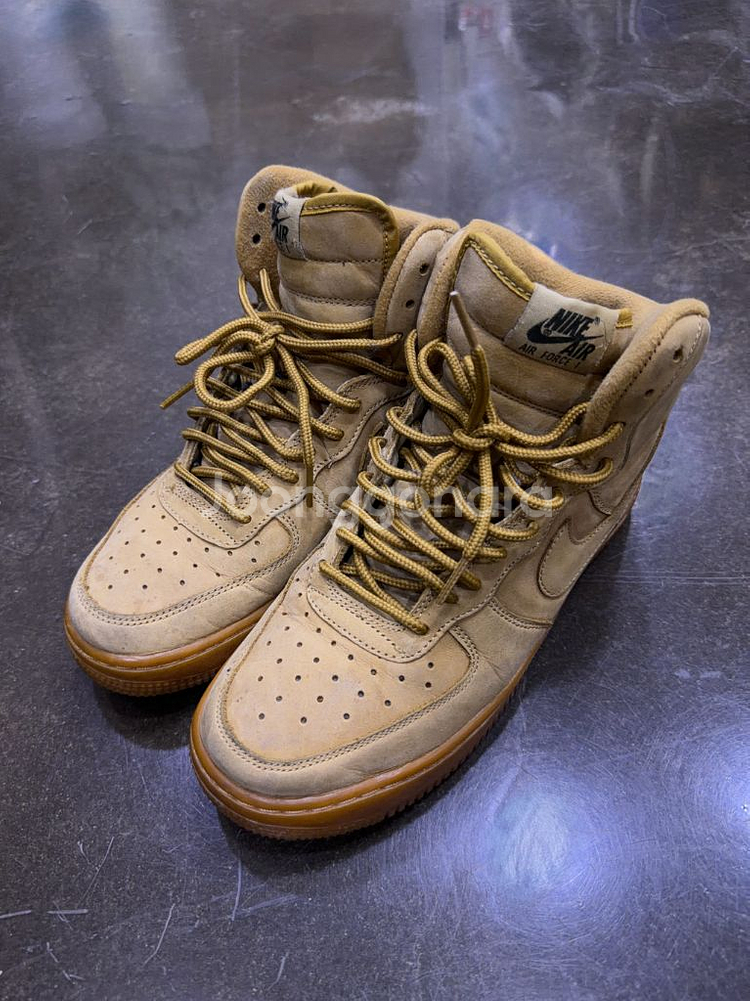 나이키 에어포스1 07 미드 된장 포스 250사이즈입니다. 베이지 색상에 미드탑이라 농구할 때 발목을 잘 잡아줄 것 같아요. 사용감은 조금 있지만, 튼튼해서 오래 신으실 수 있습니다. 7y사이즈라 기존 250보다는 작습니다. · 빈티지 제품 특성상 미처 발견하지 못한 오염이나 데미지가 있을 수 있습니다. · 모니터 사양에 따라 색상이 다르게 보일 수 있습니다. · 측정 방법에 따라 1~2cm 오차가 발생할 수 있습니다. · 교환 및 환불은 불가능하오니 신중한 구매 부탁드립니다.