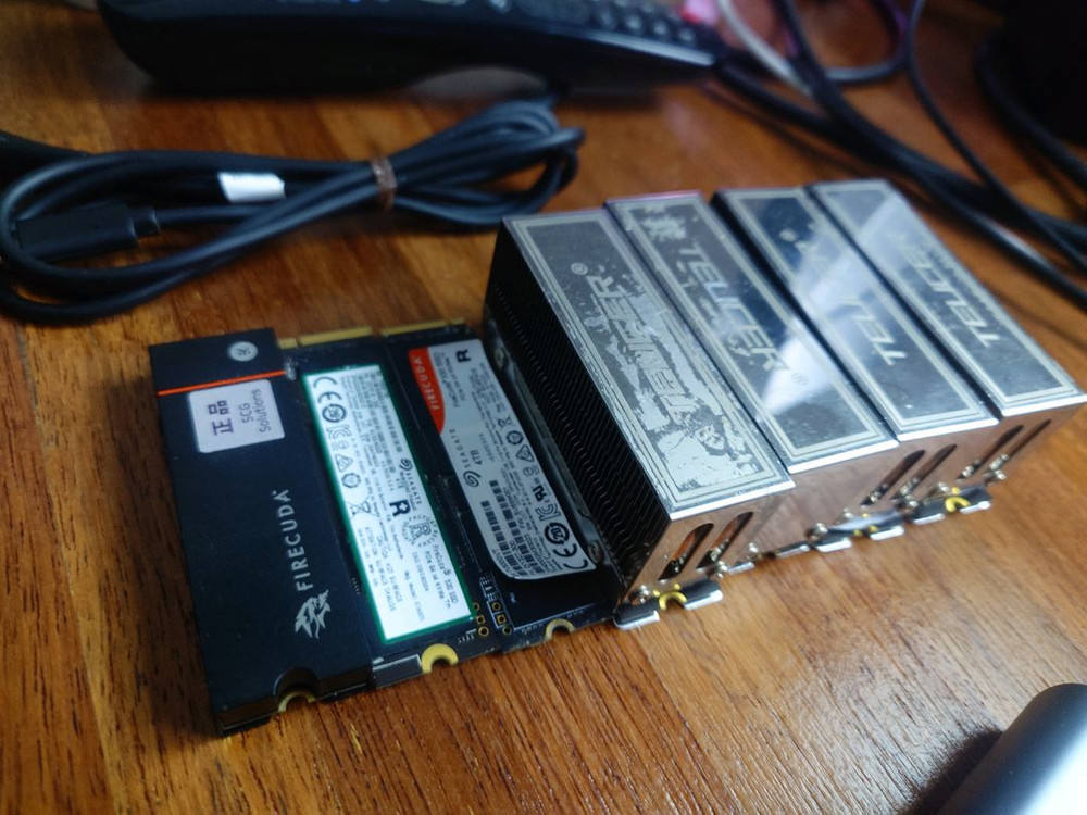 nvme ssd 6개 연결되는보드+pcie ssd카드 해서 7장 헤놀로지 nas용으로 사용하던 제품입니다. z790 nova 인텔 da4 sfp 10기가 랜카드4포트 중국산 10기가 sfp 8포트 스위치허브 필요하신분 문의주세요 위세팅으로 나스에서 pc로 전송속도 4.5기가 까지봤습니다. 5100tbw라 경쟁제품대비 수명좋습니다. 1번 판매완료 2번 53만원 리퍼제품 박스 X 3번 50만 히트싱크모델이나 히트싱크제거함 워런티깨짐 박스X 4번판매완료 5~7번 55만 박스X 원하시는경우 사진에있는 히트싱크드림 혹시 파이어쿠다 2tb 찾는분들 1000시간미만 박스O 30만원에 6장있습니다. 개인입니다