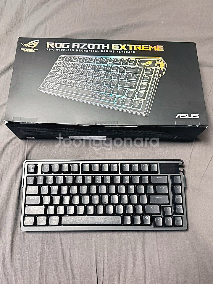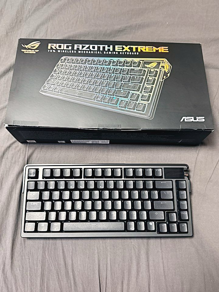 정발 ASUS ROG AZOTH EXTREME 유무선 커스텀 기계식 키보드 (8000Hz/풀알루/카본파이버) 판매합니다. 현재 로그 커스텀 기계식 게이밍 키보드 중 플래그십 제품으로 몇 안되는 무선 8000Hz 폴링 지원하는 키보드이며 풀알루미늄 바디에 카본파이버 보강판, 다층 흡음구조로 최상급 타건감입니다. 그리고 모든 기능을 컨트롤할 수 있는 풀칼라 LED 인디케이터가 달려있습니다. 또 무선 사용시 배터리 타임도 깁니다. 작년 5월 제이웍스 정발 새제품 구입했고 ASUS 게이밍 기어 유통사가 대원CTS로 이관되어 거기서 무상 AS 받으면 됩니다. ROG 제품 수집용으로 구입했던거라 테스트 타건만 하고 실사용은 안했습니다. 외관 및 작동 상태 완벽하고 구성품 빠짐없는 박스풀셋에 키보드 본품외엔 꺼내보지도 않았네요. 송파역 근처 헬리오시티에서 직거래하거나 택비 5,000원 추가하시면 편의점택배 보내드립니다.
