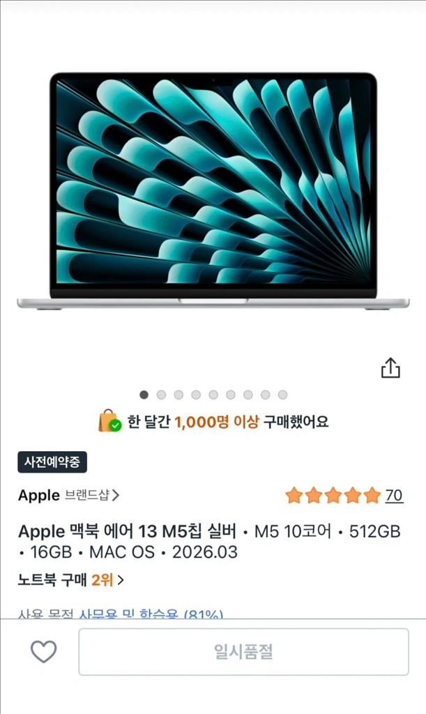 개인정보(거래정보)를 주고받는 행위는 사기에 노출될 수 있으므로 즉시 중고나라로 신고해 주세요모델명맥북 에어 13 M5컬러실버애플 맥북 에어 13 M5칩 실버 미개봉 새상품 입니다 직거래, 택배 됩니다 연락주세요!