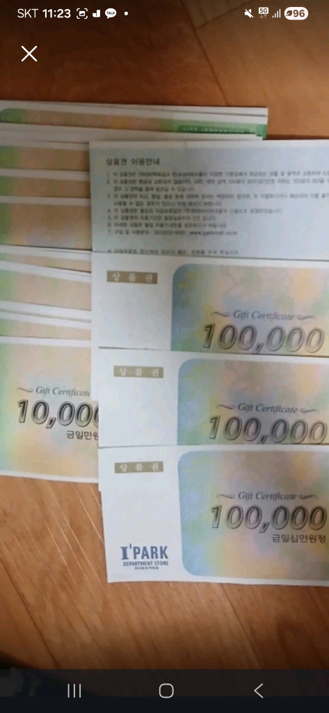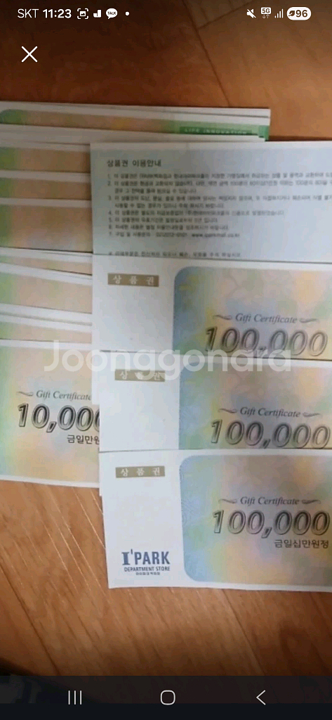 개인정보(거래정보)를 주고받는 행위는 사기에 노출될 수 있으므로 즉시 중고나라로 신고해 주세요안녕하세요 아이파크상품권들을 타 백화점 마트등등 상품권들과 교환가능합니다 아이파크박화점상품권 증정용+일반용=총150만원 전부교환희망합니다 연락부탁드리겠습니다