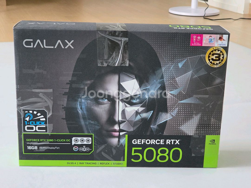개인정보(거래정보)를 주고받는 행위는 사기에 노출될 수 있으므로 즉시 중고나라로 신고해 주세요GeForce RTX 5080 갤럭시 블랙 그래픽카드입니다. 박스와 구성품이 모두 포함되어 있고 상태 깨끗합니다