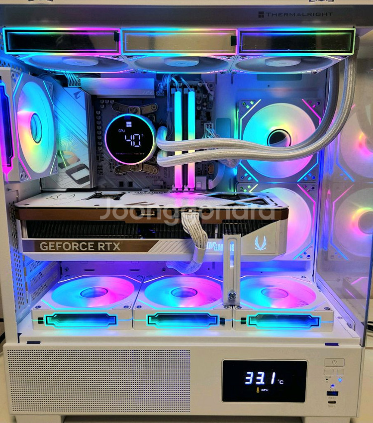 cpu 라이젠 9800x3d 쿨러 써멀라이트 frozen magic digital v2 보드 기가바이트 b850m 어로스엘리트ice wifi 그래픽 조텍 rtx5080 solid oc white 램 32gb 에센코어클레브 ddr5 5600 16x2 ( 6000 cl30 오버 및 안정화) 딥쿨 방열판 ssd 1tb 이메이션 z991 m.2 ( d램 탑제) 파워 1000w 엔티스 eg gold 풀모듈러 atx3.1 윈도우 11pro 정품 모든 부품 화이트 구성에 고사양 본체 입니다. lcd창으로 cpu,gpu 온도 관리 편하고 사용감 전혀 없으며 부품박스 전부 보유 하고 있습니다. 경기 평택 입니다.