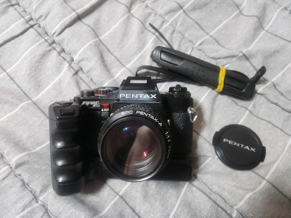 펜탁스 프로그램A 바디및 50mm f1.4렌즈 + 모터드라이버 셋트 입니다 세월에비해 전체적인 상태는 괜찮은 편입니다 작년 1초월경 종로 제일카메라에서 오버홀및 렌즈 크리닝 받았습니다 노출계포한 전기능 이상없이 잘 작동합니다 다만 마지막 사진에서 처럼 뷰파인더 드려다보면 동그라미친곳에 크리닝기스 남아있으나 ,...그렇게 표시 많이 나지 않으며...별 불편함 모르고 사용했습니다 ....이점 양지바랍니다 50mm 렌즈도 곰팡이 포그 없이 깨끗합니다 추가비용없이 바로 사용하는데 전혀 이상없습니다 모터드라이버도 작동 이상없이 잘 작동합니다 사진자세히 올리니 확대해서 잘 참고 하시구 필요하신분이 구매하세요 사진에 나온 구성이 전부 입니다 모든 문의는 010오구육공5636 전화나 문자 주세요 직거래는 파주 엘지디스플레이 단지인근입니다 택배거래시엔 편의점택배이용 ...택배비 5-6000원선입니다 (지역과 무게 차이)