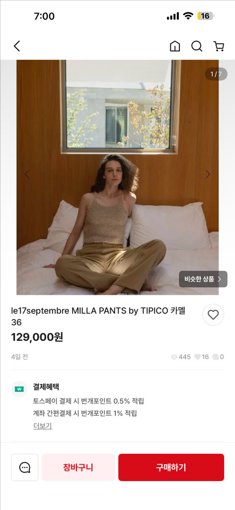 LE917 Milla 팬츠 36사이즈입니다. 실착 횟수 적어 상태 좋습니다. 160 초반인 저한테는 좀 길어서 기장 수선하여 총장 96-97 정도 입니다 (오차있음) -총장 꼭 확인해주세요 아이보리 1 네이비 1 카멜 1 개별가격 : 55000원 (배송료 : 3500원 별도) 밑단도 깨끗하고 보관 주름 정도 있습니다
