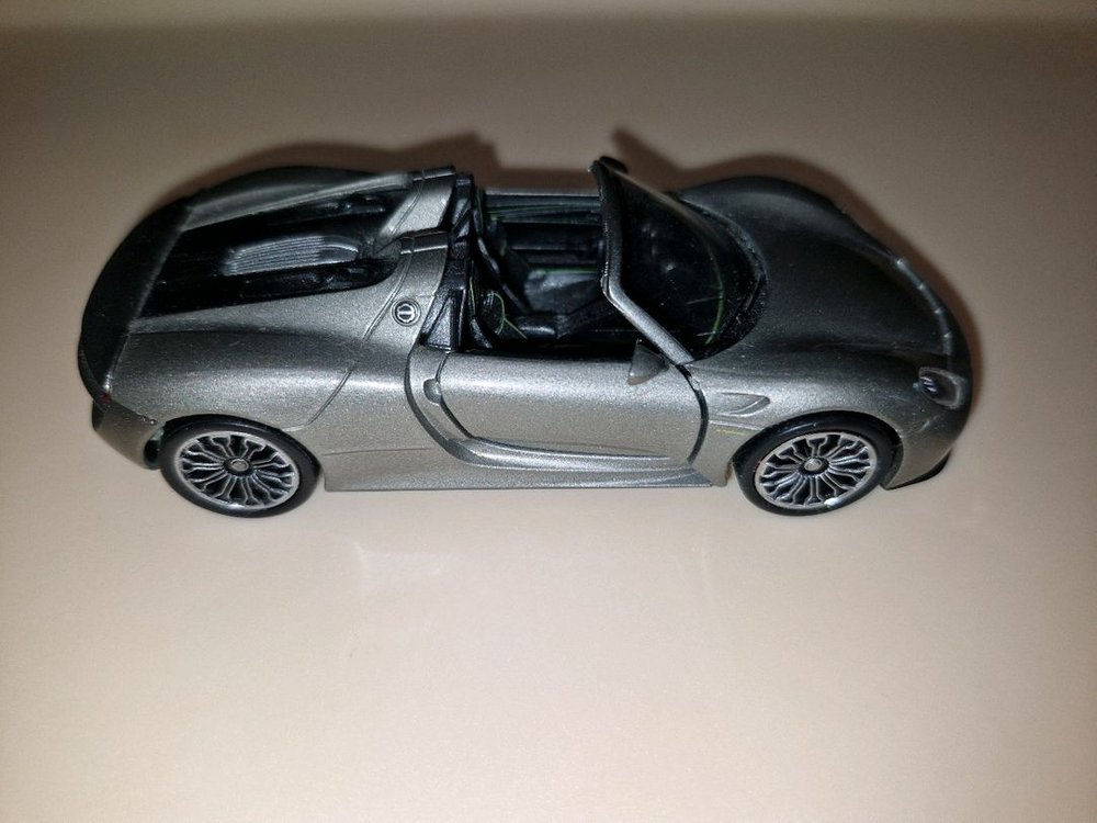 WELLY(웰리) 정품 포르쉐 918 스파이더 다이캐스트 미니카입니다. 바닥면에 WELLY / NO.48703 / PORSCHE 918 SPYDER 각인이 선명하게 확인되는 정품입니다. 좌우 도어 개폐 기능이 정상 작동하며, 실제 918 스파이더 특유의 날카로운 프론트 에어인테이크와 리어 엔진 디테일이 작은 스케일에도 잘 살아 있습니다. 건메탈 실버 컬러가 차체 라인을 더욱 돋보이게 합니다. 리어 하단에 이전 소유자 마킹 흔적이 있으며, 박스는 없습니다. 사진으로 상태 꼭 확인해 주세요. #웰리 #Welly #포르쉐918 #Porsche918Spyder #포르쉐스파이더 #포르쉐 #다이캐스트 #미니카 #도어개폐 #슈퍼카미니카 #자동차모형 #미니카수집 #1대36 #건메탈미니카 #장난감자동차