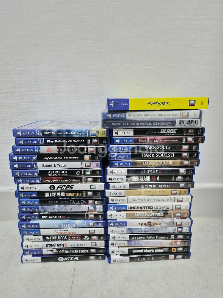ps4 ps5 타이틀 팝니다. 글에없는건 팔린거예요 쿠폰은다썼습니다. ps5 GTA5 2.5만 PS5 피구라 3만 ps4 다크소울 1 ,2,3 세트 8만 ps5 고스트오브 스시마 3만 ps4 언차티드 더 네이선 드레이크 컬렉션 1만 ps5 언차티드 레거시오브 컬렉션 3만 ps4 라스트오브어스 리마스터드 0.5만 ps4 로드오브더 폴른 2014 1만 ps5 엘든링 3만 ps4 블러드본 디 올드헌터스 에디션 3만 ps5 와룡 3만 ps4 몬스터헌터 월드 아이스본 2만 ps5 갓오브워 라그나로크 2.5만 ps4 갓옵워3 1 만 ps5 바이오하자드 re4 3만 ps5 와치독 리전 리미티드 1만 ps4 배틀필드V 1만 ps4 디비전 0.3만 ps4 다잉라이트 1 인핸스드 에디션 1만 ps5 다잉라이트 2 스테이휴먼 1.5만 PS5 스텔라 블레이드 3만 PS4 사이버펑크 1.5만