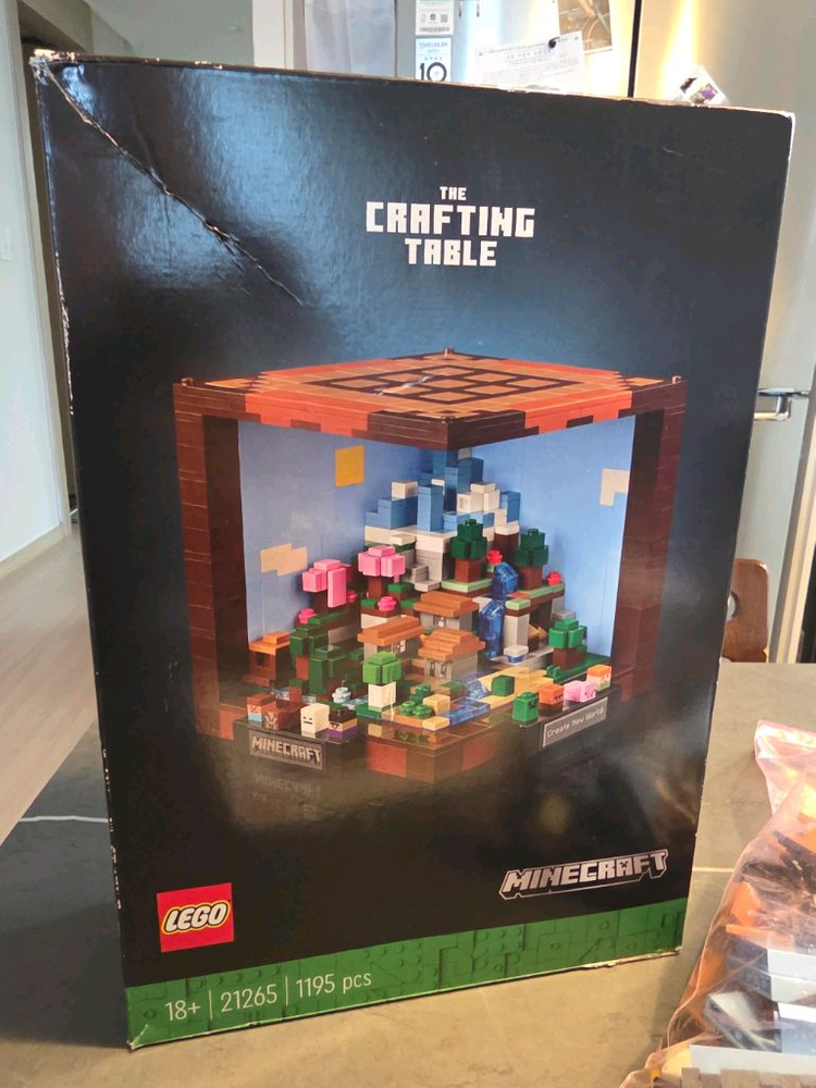 레고 마인크래프트 21265 크래프팅 테이블 세트예요 1195피스로 구성되어 있어 조립하는 재미가 있어요 마인크래프트 게임 속 장면을 그대로 옮겨놓은 듯한 디테일이 살아있어요 레고 부속모두있음 설명서 있음 박스있어요 한번맞추고 정리해두었습니다. 택배비추가있습니다