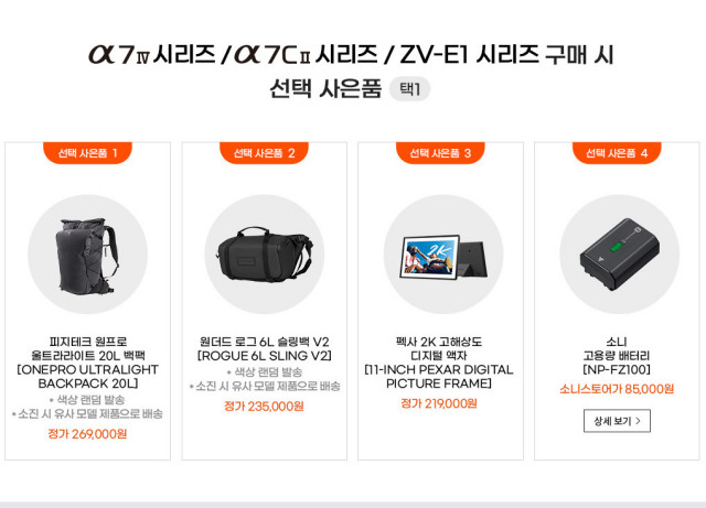 지금 소니에서 사은품증정 행사중이예요~ 정품배터리,백팩,슬링백,디지털액자등 선택가능합니다. 국내공식 소니코리아 대리점 정품입니다. 이번주 구매했으며 원하시면 영수증 챙겨 드리겠습니다. 물론 네이버 안전거래 택배(+4천원) 가능합니다. 만나서 거래는 서울 용산역KTX 에서 서로 날짜,시간 정해서 가능하고 광주는 아무때나 가능합니다.