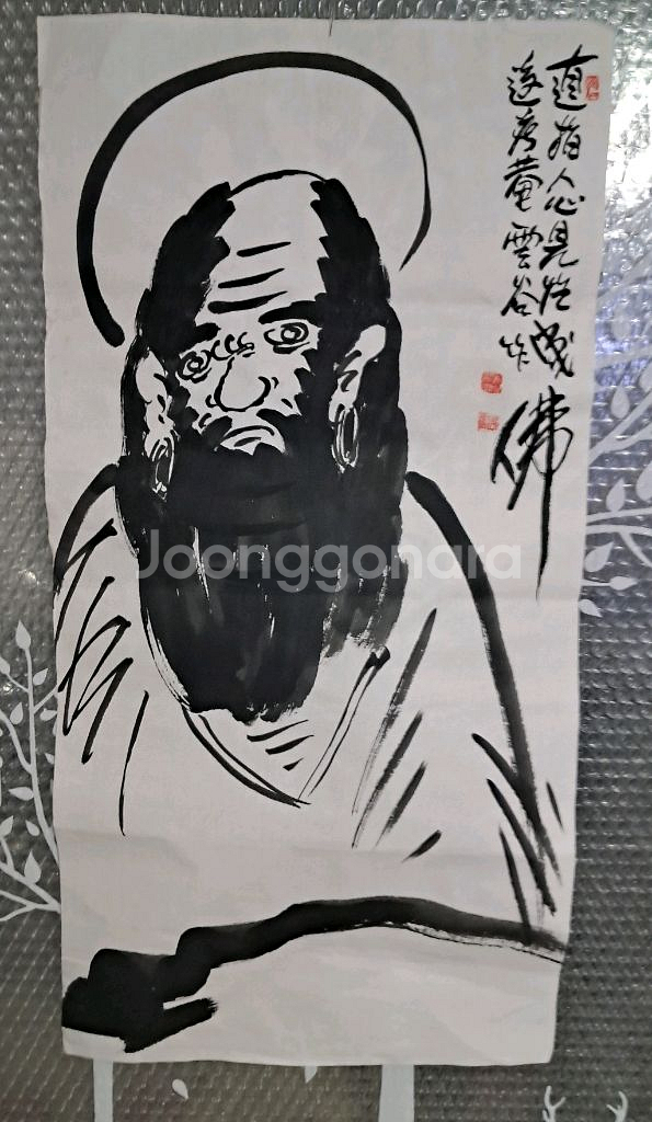 운곡 작가님의 달마도 판매합니다. 붓의 터치감이 살아있는 달마도의 표정이 인상적입니다. 집에 걸어두면 좋은 기운이 들어올 것 같아요. 문의 없으시면 바로 안전결제해주시면 됩니다! 가로 35cm 세로 69cm 세월흔적 얼룩 구김 땟물 많습니다