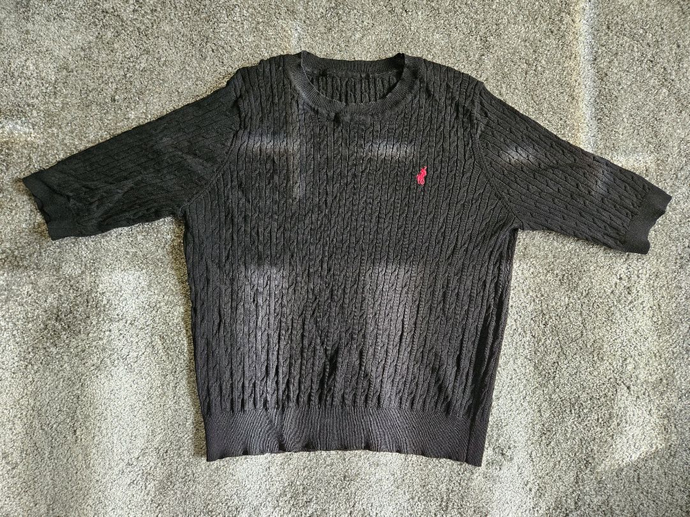 안녕하세요, 폴로 반팔 니트 판매합니다. XL 사이즈 입니다. 가슴 (단면) 넓이 45cm 입니다. GS25나 CU 반값택배로도 거래 가능합니다. 연락주세요!
