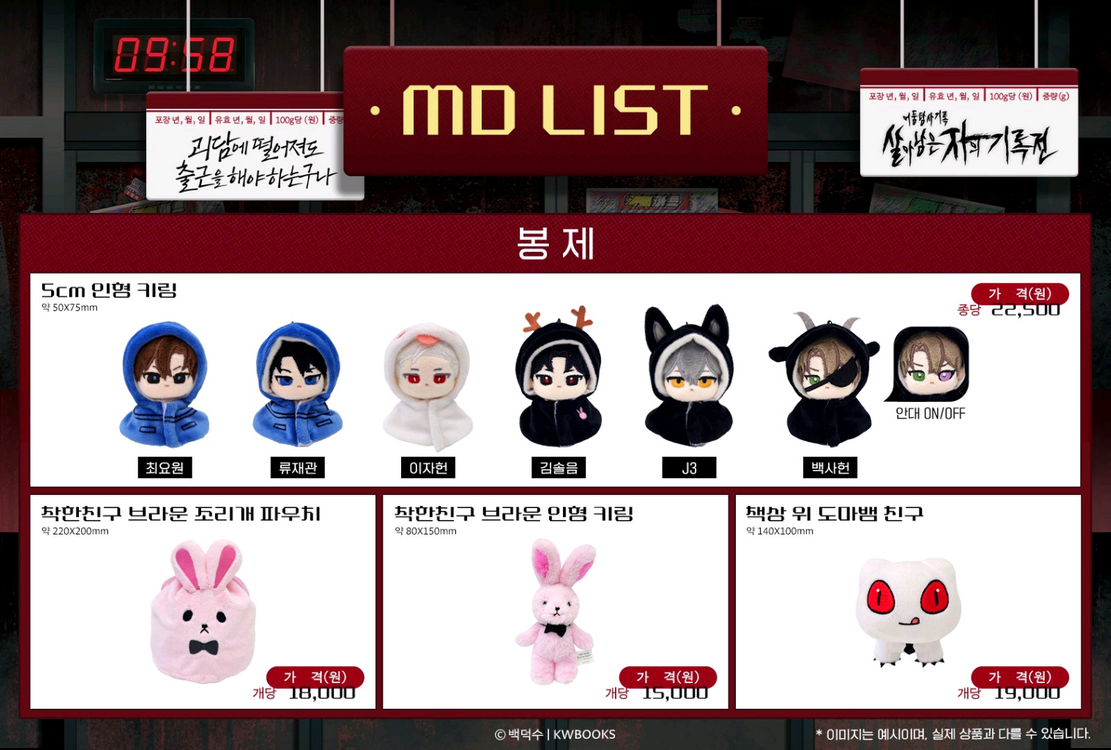 ☑️ 예약중 ⭕️ 선제시 (구입 안할 수 있음) ❌️는 구입 대상에서 제외 및 끼워팔기 불가능 구성 • 산군님 부적 0.5 • 은심장 배지 2.0 • 쁘띠 스탬프 2종 2.5 • 도넛 박스&홀더 1.0 ☑️ •코스터 5개&우표 5개 3.2 ☑️ • 테이프 1.2 • 룰렛 3등 특전 10000캐시 (사용기간이 25.11.30일) 1.0 • 카드 스티커 2종 0.6 (우대) • 교육서 클립보드 3.0 •(김솔음 ,백사헌, 류재관, 최요원, 제삼) 5인형 3.4 ~4.3 •말풍선 스티커&타투 스티커 2.0 ⭕️목록 • 우리가 도움 키링 • 엽서 6장 •그립톡 •도마뱀 인형 • L자 파일 •착한친구 • 포스트잇 • 룰렛 포토카드 • 포토카드 10종 세트 중 이자헌, 브라운, 솔음, 사헌만 개별 가능 (<-원가 이하만 가능) ❌️목록 •입사키트 •앉아 있는 피규어 B세트 (포도 포함) •이자헌 5인형 그 외 공식 굿즈 포함 구입합니다. (표시가 없는 것은 구매 안함이 아니라 있어도 되고 없어도 되는 거라서 위의 글 상품이라 같이 판매하면 사요. 즉 끼워팔기 가능) 예약구매로 진행하고 있습니다. (3만원 이상일시) 꼭 문의 주세요 가격 협상 가능합니다.