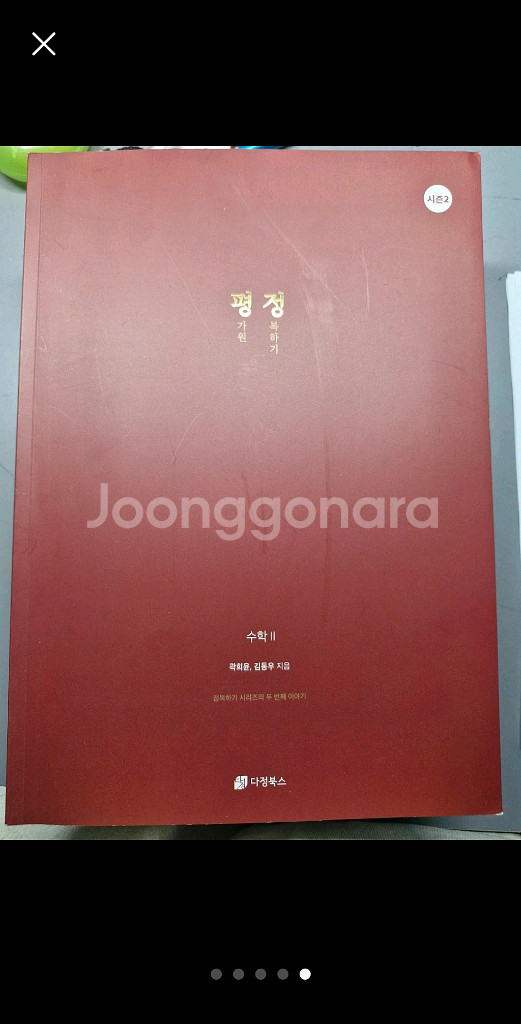 다정북스에서 나온 다정, 평정입니다. 이면지에 문제를 풀었기 때문에 거의 새거라고 보시면 됩니다. 그러나 중간중간 지우개똥이 있거나 책 표지가 눌려 자국이 있을 수도 있습니다. 가격은 모든 책의 가격은 동일하게 하여 판매하도록 하겠습니다. 위에 적힌 가격은 책 하나의 가격입니다. 정가: 다정:25,000 평정 시즌1: 25,000 평정 시즌2: 28,000 수1 시즌1 수2 시즌2 남아있습니다