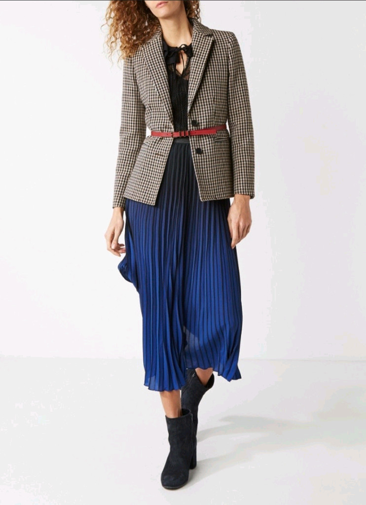 [새제품] 마쥬 울 하운드투스 체크 자켓&바지치마 스커트 셋업 세트 둘다 미착용 새제품이에요 자켓은 택제거, 스커트는 택달려있습니다 옷장에서 오래동안 보관했지만 옷장정리하다가 발견해서 내놓습니다 유행 타지 않는 하운드투스 패턴이며 울혼방이예요 치마처럼 보이지만 속은 바지 형태인 퀼로트 디자인이라 착용감이 편하고 활동적입니다. 마쥬 특유의 슬림하고 탄탄한 핏으로 입었을 때 실루엣이 고급스럽습니다. 둘다 36사이즈입니다. 실측은 아래와 같습니다 자켓: 총장57.5, 어깨37, 가슴39 바지스커트: 허리31, 총장37.5 지금 마쥬의 자켓만 70만원대, 스커트 40만원대에 판매중이에요 일과 판매 원하지만 따로 판매도 해요 자켓 23만원, 바지스커트 12만원 일괄 구매시 택포 27만원에 팝니다