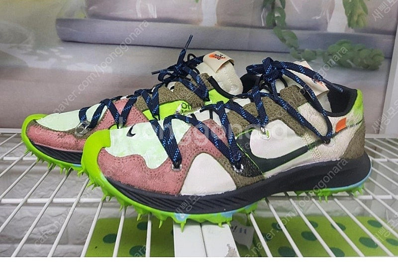나이키 오프화이트 줌 테라 카이거5 그린 런닝화 여성운동화 품번 CD8179-300 Nike x Off-White Zoom Terra Kiger 5 Electric Green (리폼 부분색칠함. 신발끈 교체 바닥돌기 부분 제거. 부속품없음. 오프화이트 케이블타이 없음) 라벨사이즈245 실착 240mm 사용감조금 상태양호 ※ 문의. 무료배송 : O1O-22O7-5656 ※