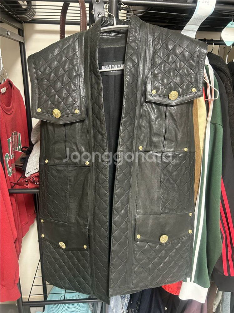 개인정보(거래정보)를 주고받는 행위는 사기에 노출될 수 있으므로 즉시 중고나라로 신고해 주세요시그니처 퀼팅 디자인의 블랙 레더 베스트예요. 골드 버튼 포인트와 앞주머니가 멋스럽고, 상태도 깔끔한 편입니다. 스타일링하기 좋은 아이템이에요!