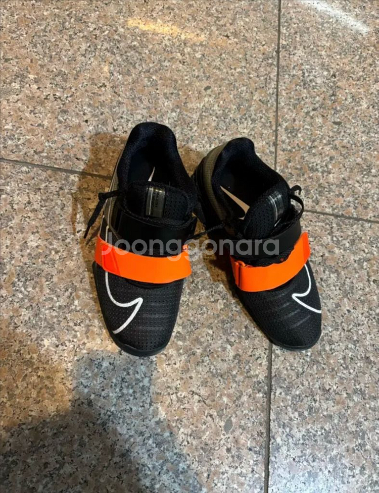 개인정보(거래정보)를 주고받는 행위는 사기에 노출될 수 있으므로 즉시 중고나라로 신고해 주세요5.5 사이즈 로말레오4 역도화 판매합니다. 블랙 색상에 오렌지 스트랩 포인트가 눈에 띄는 제품입니다. 이 색상 구하기 힘드신거 아실겁니다 실착 횟수 적어 상태 좋습니다. 제가 평소 나이키 235 // 5 사이즈 신는데 딱맞습니다 문의 없으시면 바로 안전결제해주시면 됩니다!