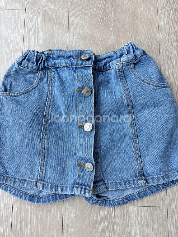개인정보(거래정보)를 주고받는 행위는 사기에 노출될 수 있으므로 즉시 중고나라로 신고해 주세요모모앤 데님 치마반바지예요. 앞면 버튼 디테일과 허리 밴딩으로 활동성이 좋고, 전체적으로 깔끔한 상태입니다. 11호 사이즈입니다. 상태좋아요