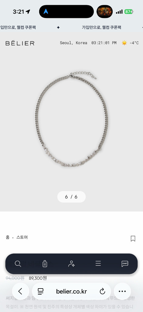 구매후 포장지만 뜯고 미착용 벨리에 목걸이 판매합니다 환불 내고 불가