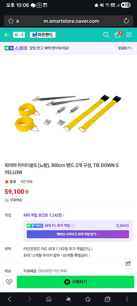 [새제품] 피아마 타이다운 S 옐로우 스트랩.