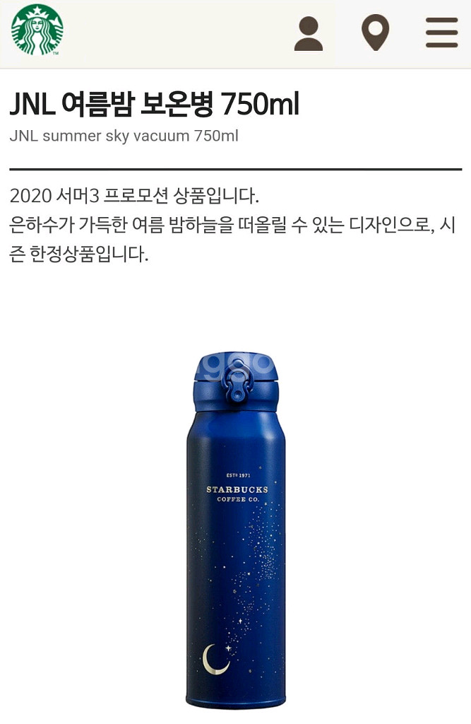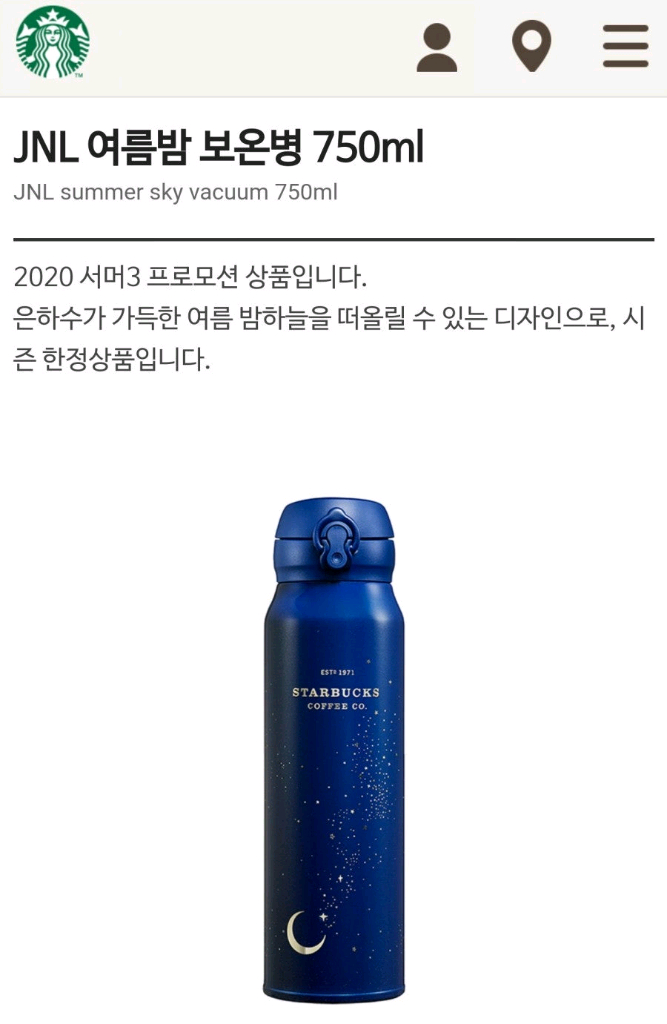 스타벅스 JNL 여름밤 보온병 750ml 이미지