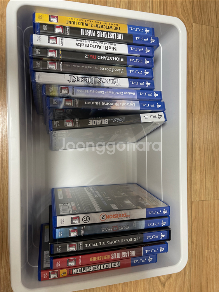 PS4용 게임 CD 일괄 정리 좌측 미개봉 새상품, 우측 개봉상품 미개봉 2만, 개봉1만 스텔라4만 하여 25만 일괄 정리 합니다. 연락 주세요! 이미 개별적으로 구매하시는 중이라 제품 말씀 주시면 답변 드릴께요. 일괄시 저 가격이며 개별시는 중고나라 가격보고좀 싸게 파는중입니다. 세키로 3만 팔림 블러드본 2만 팔림 니어오토마타 2만 팔림 위쳐3 2만 팔림 레데리2 1만 팔림