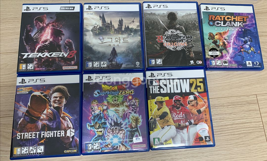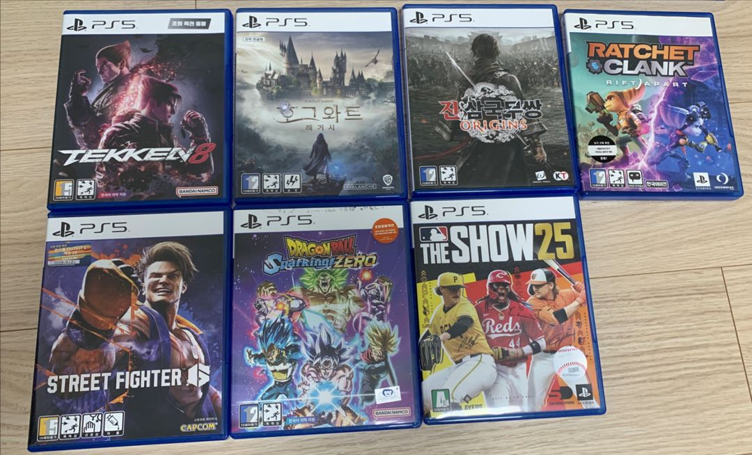 안녕하세요~! 소니 플스5 PS5 게임타이틀 다양하게 팝니다. - 데스스트렌딩2 : 4만 - 데스스트렌딩2 : 4만 5천원 (미개봉 새제품) - 라이즈 오브 더 로닌 : 53,000원 - 명말 공허의깃발 : 3만 8천원 - 인왕 1, 2 합본 : 판매완료 - 디아블로4 : 3만원 - 이블웨ㅅ트 : 2만원 - 갓ㅇ브워 라그라노크 : 3만원 (비닐 미개봉) - 고오스 요테이 : 5만 5천원 - 고오스 스시마 : 3만원 - 와룡 : 2만 5천원 - P의 거짓 : 25,000원 - 페르시아의왕자 잃어버린왕관 : 2만원 - 어쎄신 크리드 섀도우스 : 4만원 - 배틀필드 2042 : 18,000원 - 콜오브듀티 모던워페어2 : 48,000원 - 콜오브듀티 뱅가드 : 판매완료 - 철권8 : 2만 5천원 - 호그와트 : 3만원 - 진삼국무쌍 : 4만원 - 라쳇 클랭크 : 2만 5천원 - 스트리트파이터6 : 3만원 - 드레곤볼 스파킹 제로 : 4만 3천원 - 더쇼25 : 4만 3천원 반택, 일반택배 가능.
