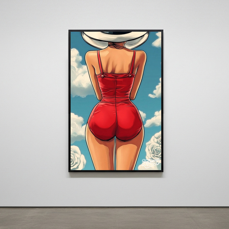 그림 액자 팝아트 인테리어소품 붉은 뒷모습의 태양 여인그림 인물액자 감각적인 스타일의 거실 대형 아트포스터 감성 인 이미지