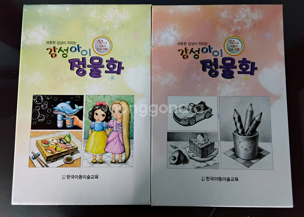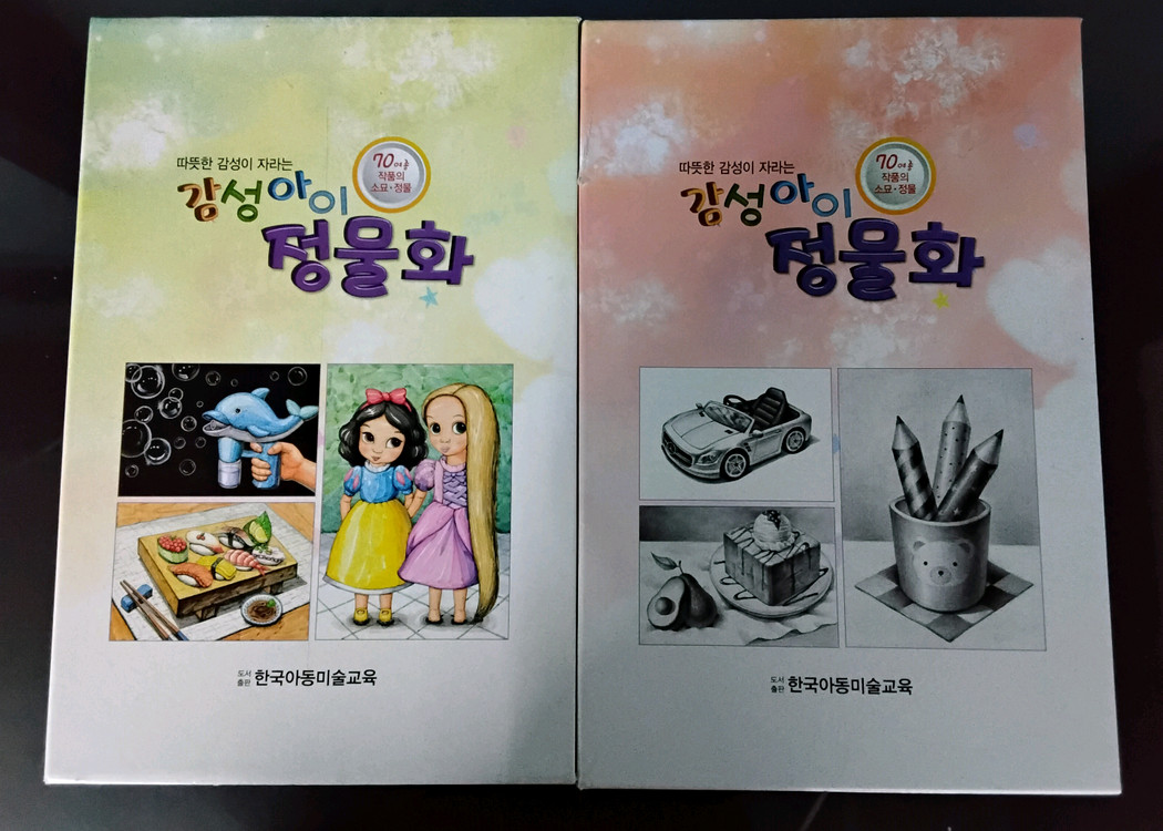 한국아동미술교육에서 발행한 감성 아이 _ 정물화는 아동 및 초등생을 대상으로 한 수채화 소묘 교재로 아이들의 눈높이에 맞춘 흥미로운 소재로 구성되어 있습니다 정물 수채화 26매 ,정물소묘26매로 총 52매의 제시용 그림이 포함되어 있습니다 1-2권으로 나뉘어 소묘와 수채화 기초를 학습하며 감각적인 개체표현력을 기르는데 적합합니다 학원이나 홈스쿨링용 교재로 추천합니다 반품× 배송비 착불