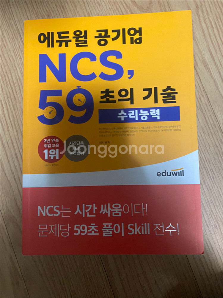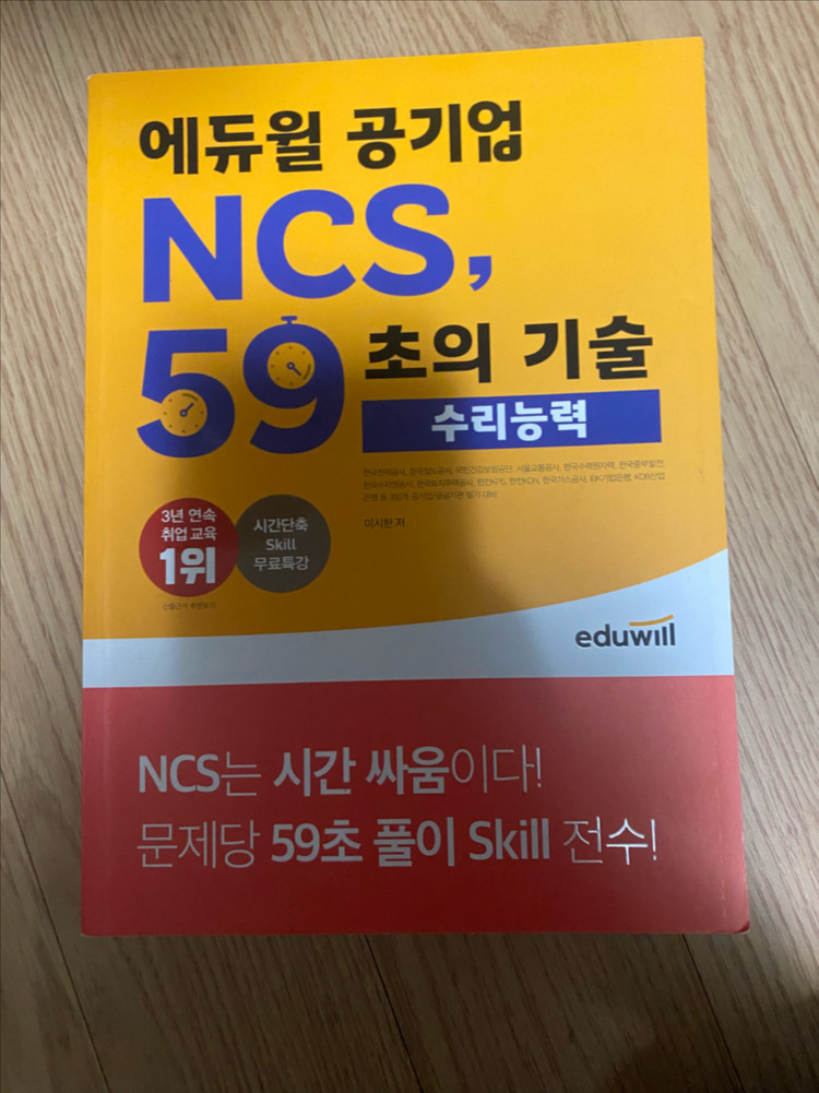 개인정보(거래정보)를 주고받는 행위는 사기에 노출될 수 있으므로 즉시 중고나라로 신고해 주세요NCS 시험 준비용 교재입니다. 표지에 약간의 사용감이 있지만 전체적으로 양호한 상태예요. 수리능력과 기술 관련 내용을 체계적으로 학습할 수 있는 책입니다.