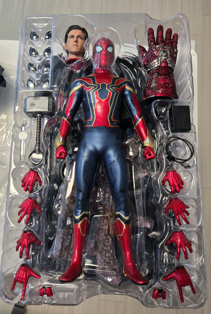 핫토이 엔드게임 아이언스파이더 2.0 입니다. 언마스크헤드 사진상의 핫토이 헤드로 변경되었고 잘맞습니다. 기존헤드는 없습니다. led 전부 잘작동하는데 버튼 온오프 스위치 끝 플라스틱 없습니다. 손톱이나 집게로 작동가능합니다. led작동에는 문제없습니다. 상세사진 원하시면 얼마든지 보내드리고 중고이기에 제가 못본 부분 있을수있습니다. 구매후 환불은 안됩니다. 을지로4가역 직거래가능하고 택배시 뽁뽁이로 안전하게 보내드려요.