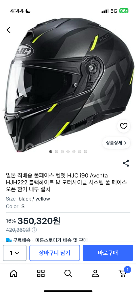 풀페이스 헬멧 HJC i90 아벤타 모델이에요 사이즈는 M입니다 풀페이스와 오픈페이스 겸용으로 사용 가능해요 보시다시피 사용감이 엄청나게 작고 사용한지 세달정도 됐기 때문에 잔기스 아주조금씩 있습니다 환기를 자주 시켜서 냄새도 나지 않습니다 쿨거해주신다면 네고 해드릴게요