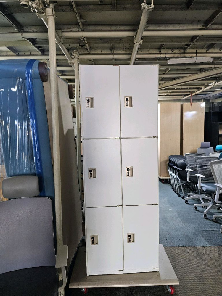 깔끔한 화이트 컬러의 6칸 수납장이에요. 내부가 넓어서 정리정돈하기 좋고, 상태도 양호합니다. 실용적이고 튼튼해서 오래 사용하실 수 있어요. 가로700 세로400 높이1900 6인용 사물함 옷장 진열장 중고 보유량 20개정도 6인용 가격입니다