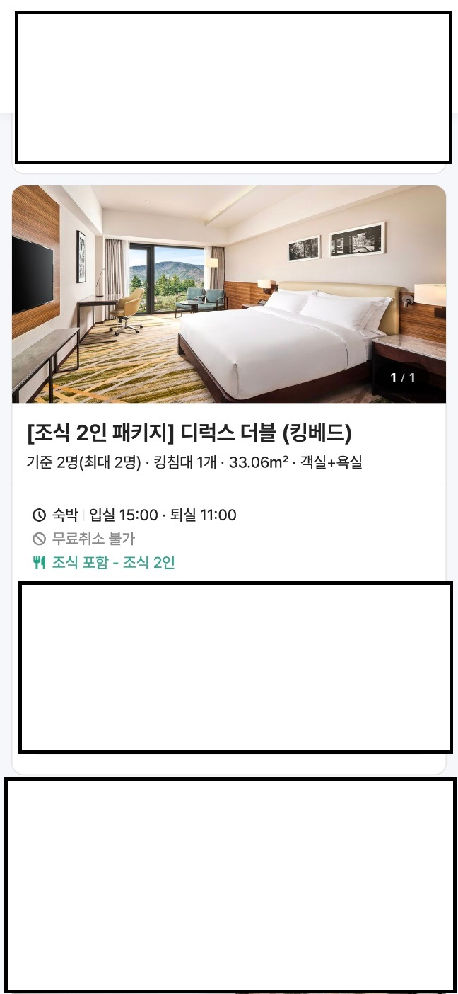 개인정보(거래정보)를 주고받는 행위는 사기에 노출될 수 있으므로 즉시 중고나라로 신고해 주세요2026년 4월 30일 목요일 입실 5월 2일 퇴실 연박입니다. 2인 조식 패키지 있습니다. 거래 시 예약자 정보를 알려드려요